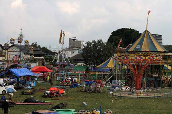 Tidak hanya itu jaraknya, hanya beberapa meter dengan keberadaan diantara para stand tenda sejumlah pedagang kaki lima. Maupun beberapa wahana jenis permainan khusus bagi untuk anak-anak bpada kegiatan pasar malam tersebut. Ironisnya saat permainan berlangsung padahal menggunakan alat pengeras suara Speaker Sound Sistem.